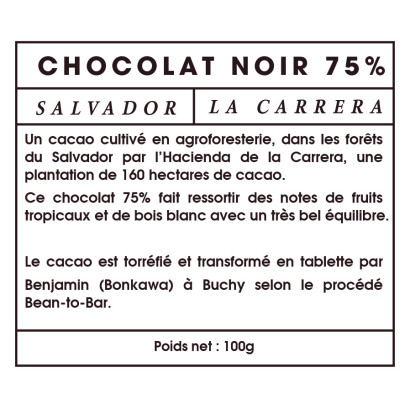 Chocolat Noir 75% Cacao - La Carrera - 100g -...