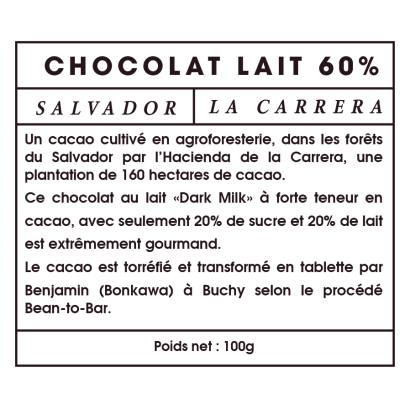 Chocolat au lait 60% Cacao - La Carrera - 100g -...