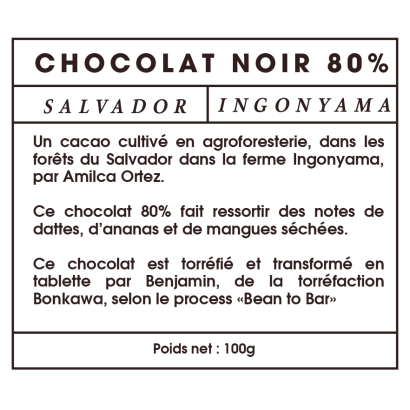 Chocolat Noir 80% Cacao - Ingonyama - 100g -...