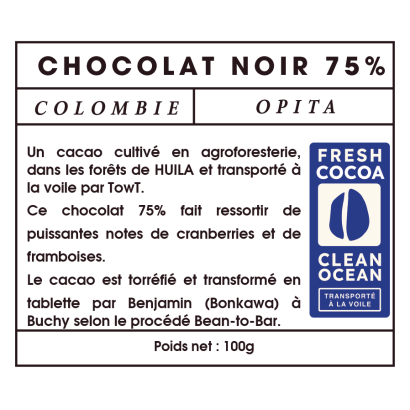 Chocolat noir 75% Cacao - Opita - 100g - Ze'Good'Choc